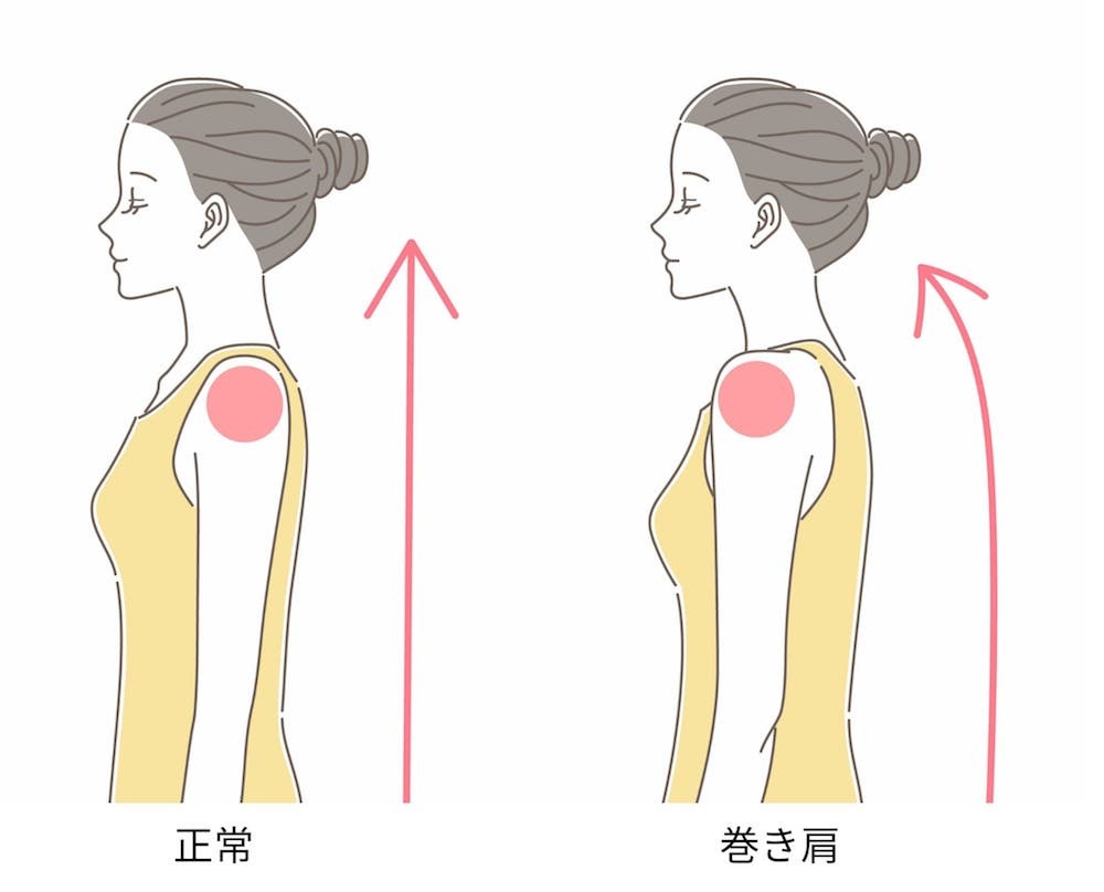 巻き肩とは、肩甲骨が前方に突き出し肩が内側に巻き込まれる姿勢になっている状態です。